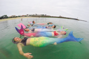 Par la suite j’ai réalisé qu’il y avait un réel attrait pour l’univers des sirènes et son côté magique. Je me suis alors demandée comment partager ma passion avec plus de monde, j’ai acheté une dizaine de costumes supplémentaires et je me suis mise à proposer des cours en mer. J’ai testé aussi de donner des cours en piscine mais le rendu est moins sympa, moins féérique…